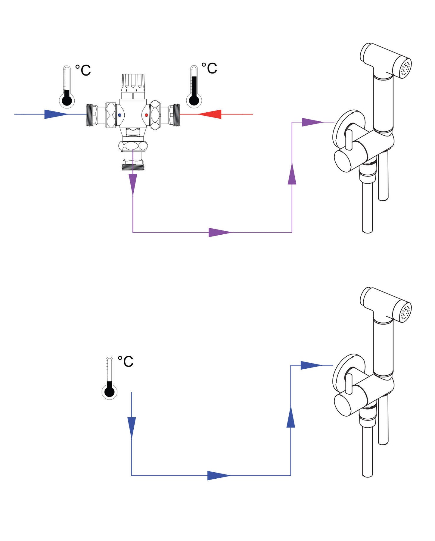 Funkcionālais bidē komplekts "3 vienā" ir paredzēts mazākām telpām, kurās nav vietas tradicionālajai bidē. Tas palīdz uzturēt augstu higiēnas līmeni, bet to var izmantot arī, lai piepildītu augstus traukus ar ūdeni vai tīrīšanas darbiem. Rokturim ir ērta palaišanas un apturēšanas poga. Tā ļauj izvairīties no nejaušas ūdens šļakstīšanās vai pilēšanas, kad to nolaižat uz roktura. Punktveida stiprinājums nozīmē, ka uzstādīšana nav sarežģīta, un viss izskatās ļoti estētiski. Ar leņķveida savienojumu. Izstrādājumam ir viena ūdens padeve (auksts vai jaukts). Roktura turētājs ir veidots tā, lai to varētu viegli noņemt un novietot.