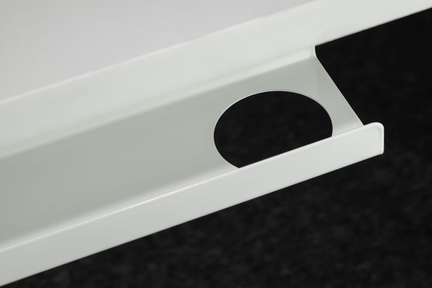 Tādā veidā mēs rūpējamies par jūsu piederumiem. Paskatieties zem darba virsmas – tur, diskrētā paplātē, novietojiet strāvas sloksni.