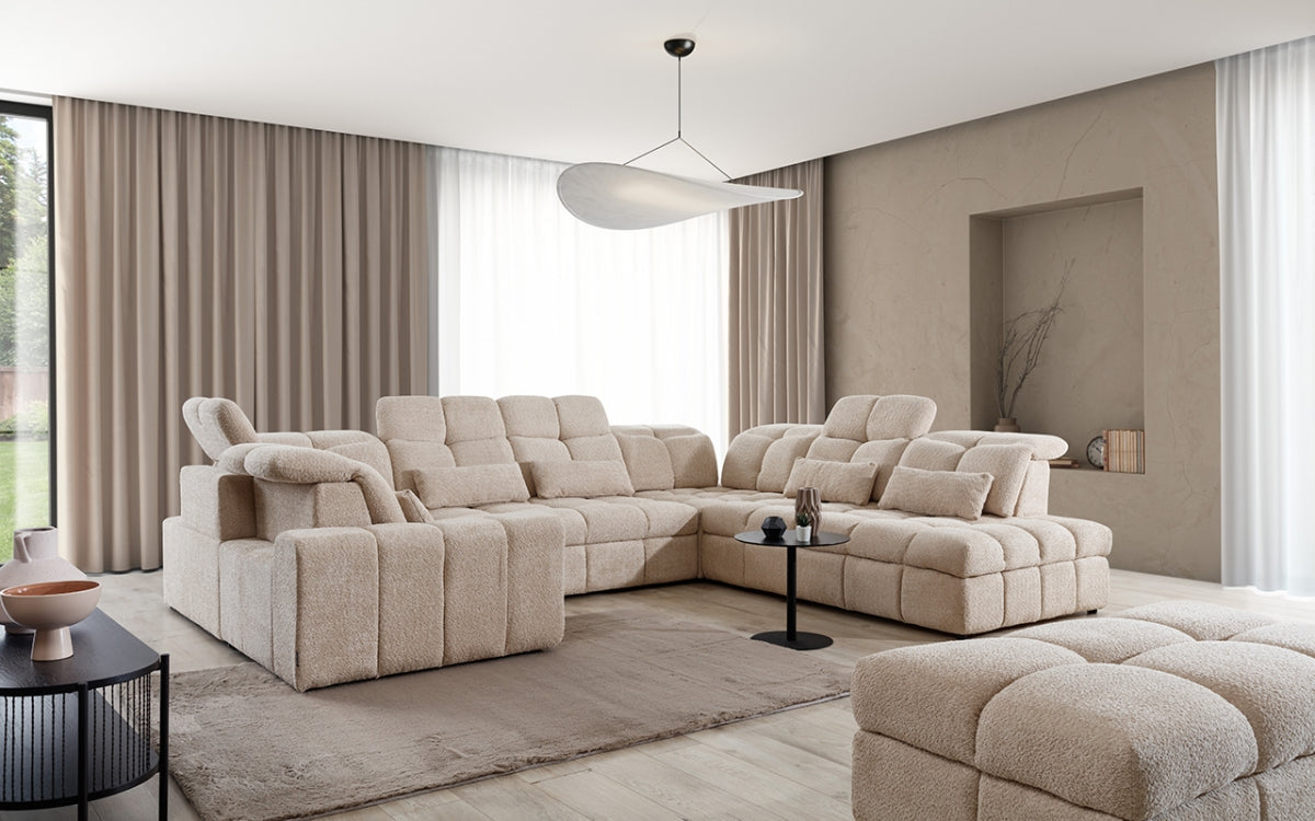 Dīvāns MARSEILLE U ar elektrisko sēdekli bēšs 350/87-107/280-200 Catch me 02