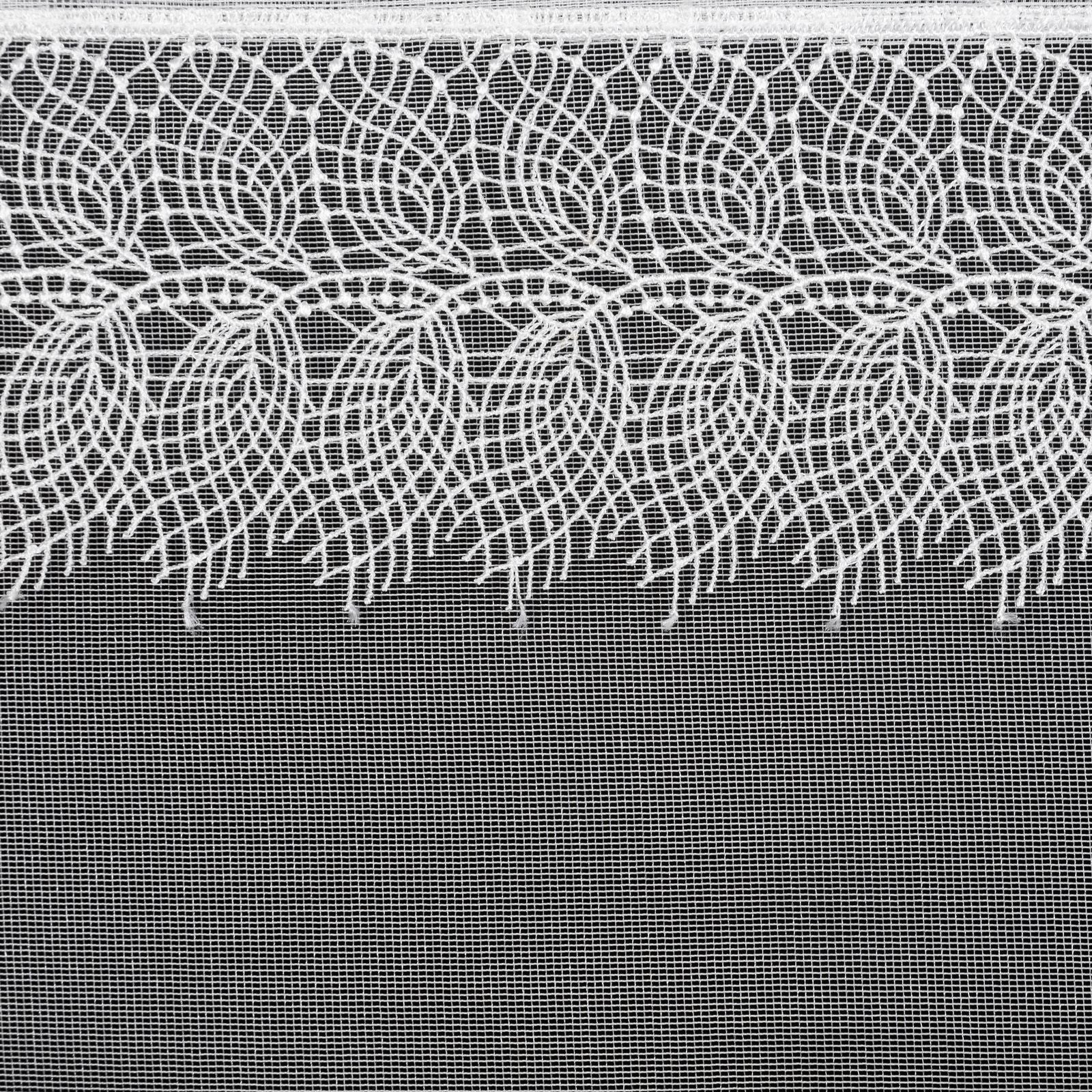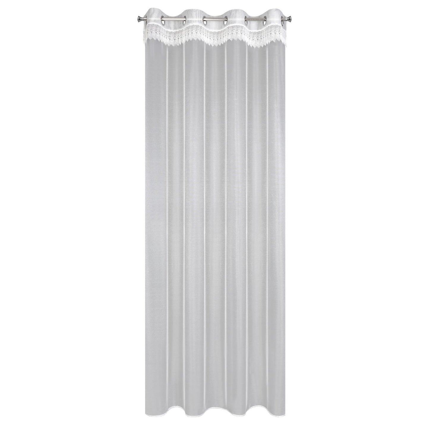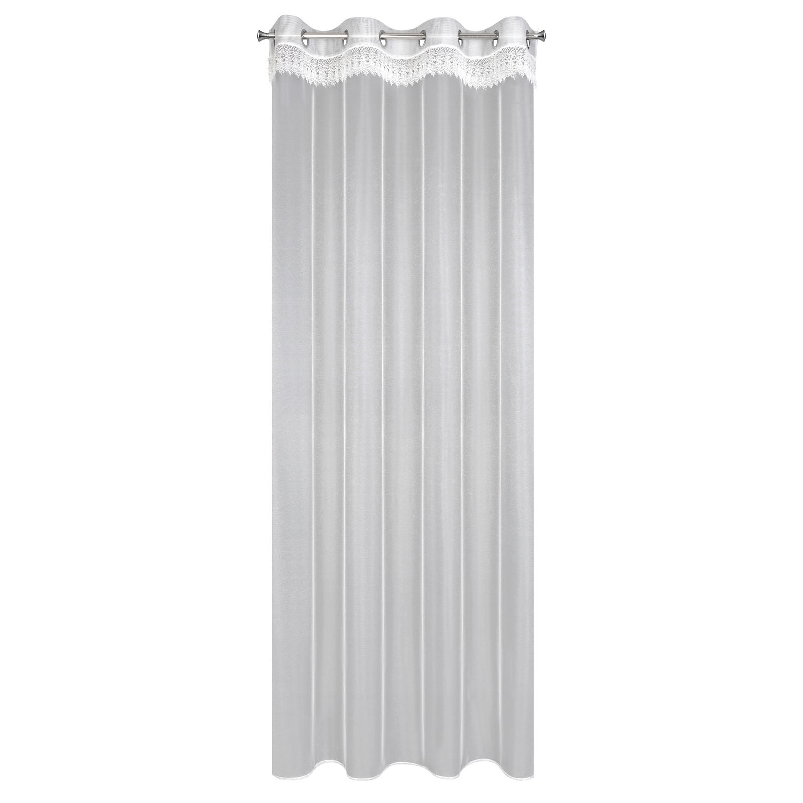 Gatavs aizkars ar dekoratīvām mežģīnēm platums: 140 cm, garums: 250 cm, krāsa: balta, svars: 40 GSM, sastāvs: Sastāvs: 100% poliesteris