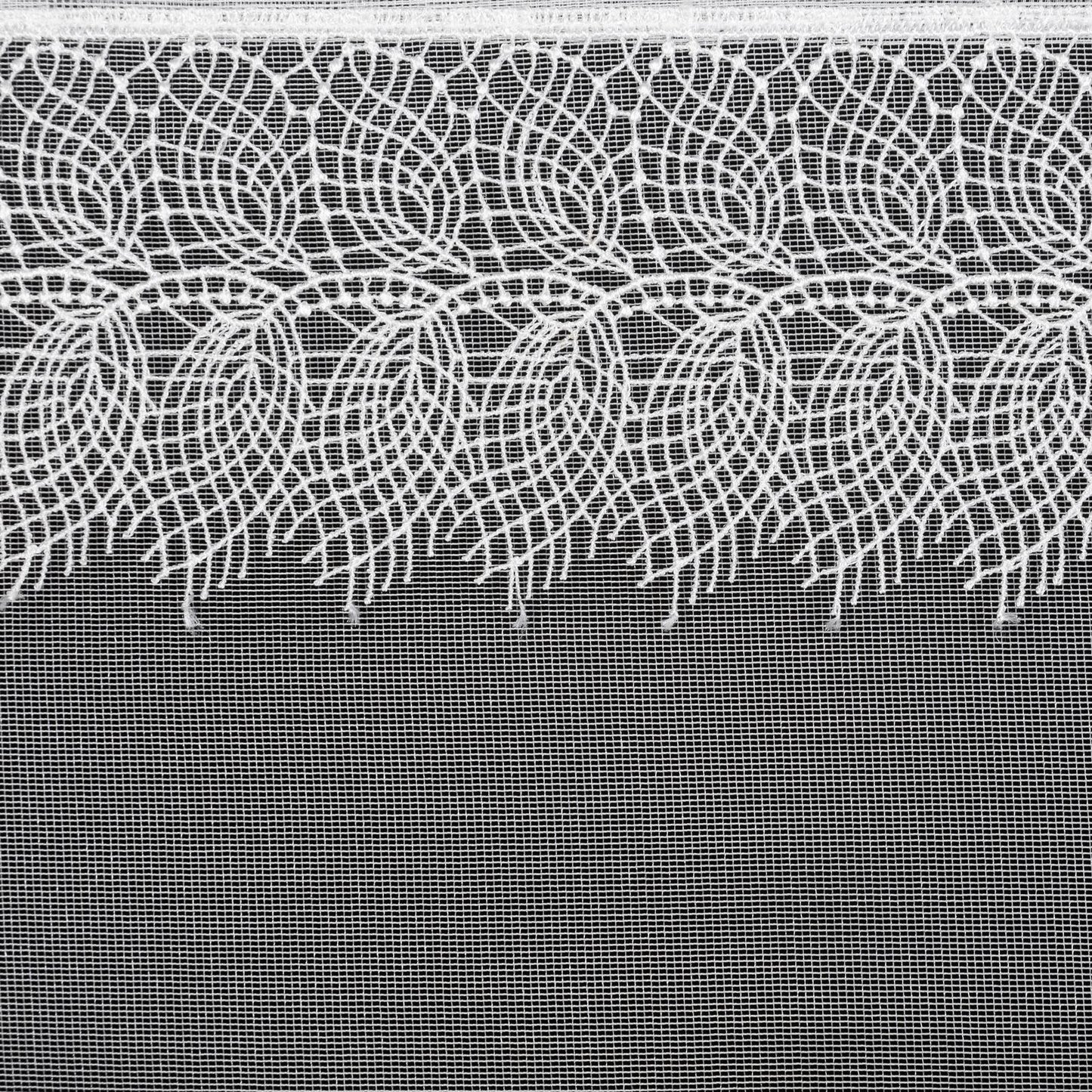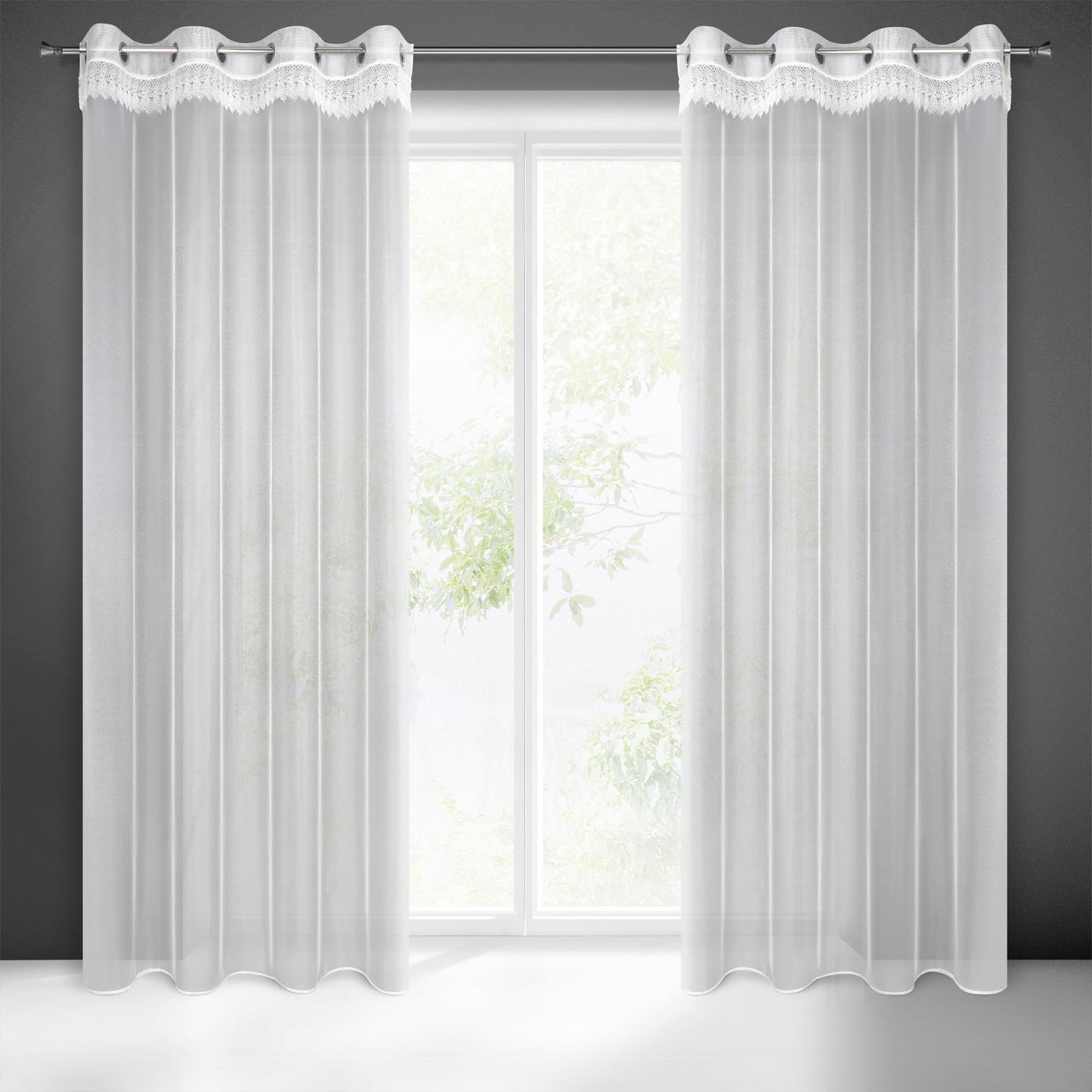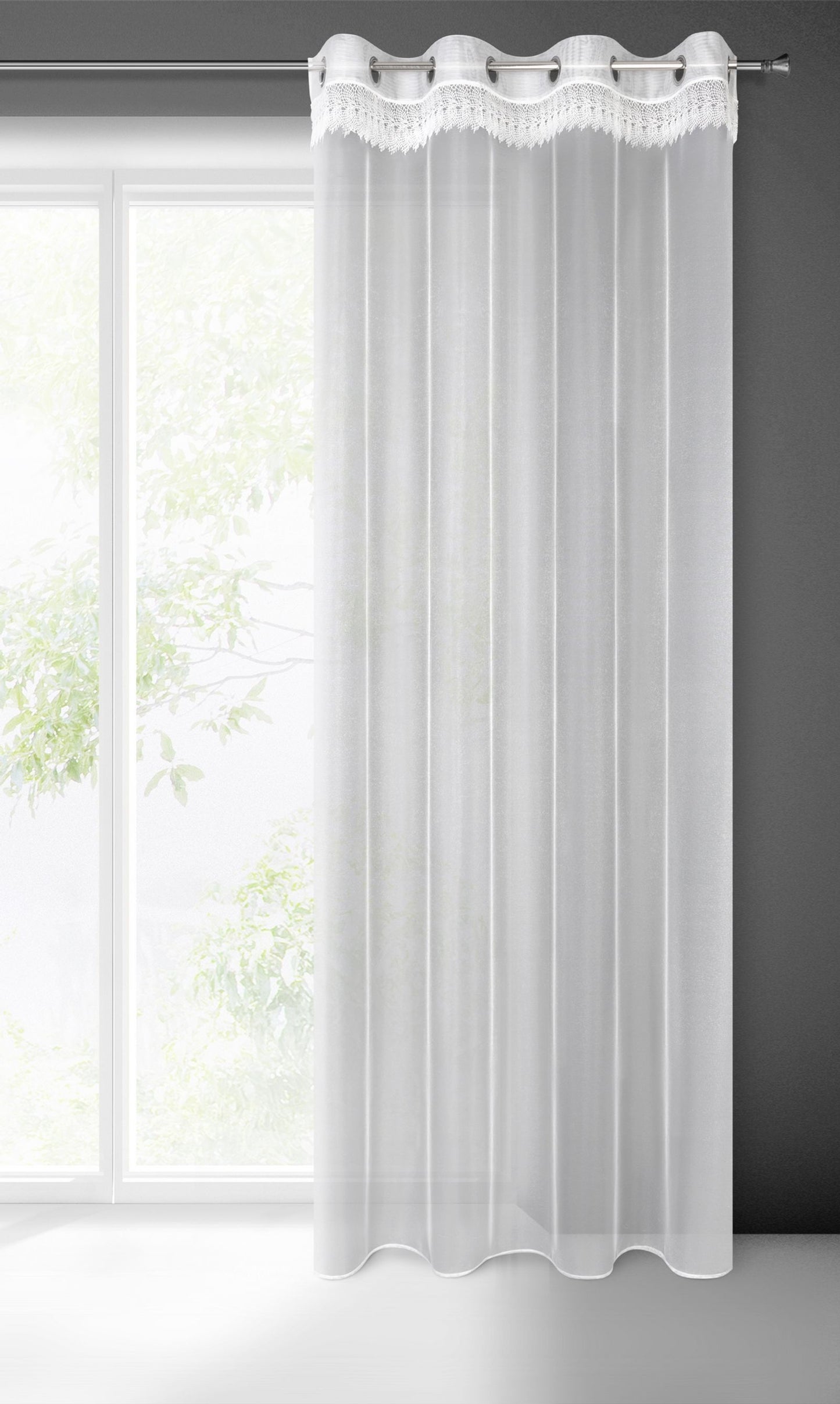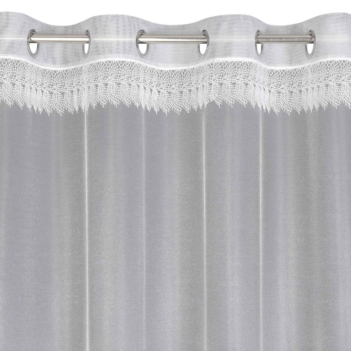 Gatavs aizkars ar dekoratīvām mežģīnēm platums: 140 cm, garums: 250 cm, krāsa: balta, svars: 40 GSM, sastāvs: Sastāvs: 100% poliesteris