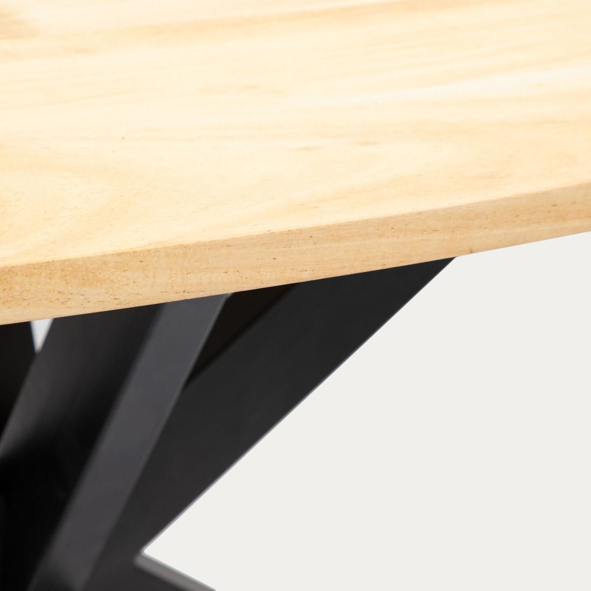 Galda virsma ir izgatavota no akācijas koka, kas ir ciets un izturīgs. Tā ir piestiprināta pie metāla kājām, padarot galdu stabilu un ērtu ikdienas lietošanai. 2,6 cm biezā virsma ir lakota.