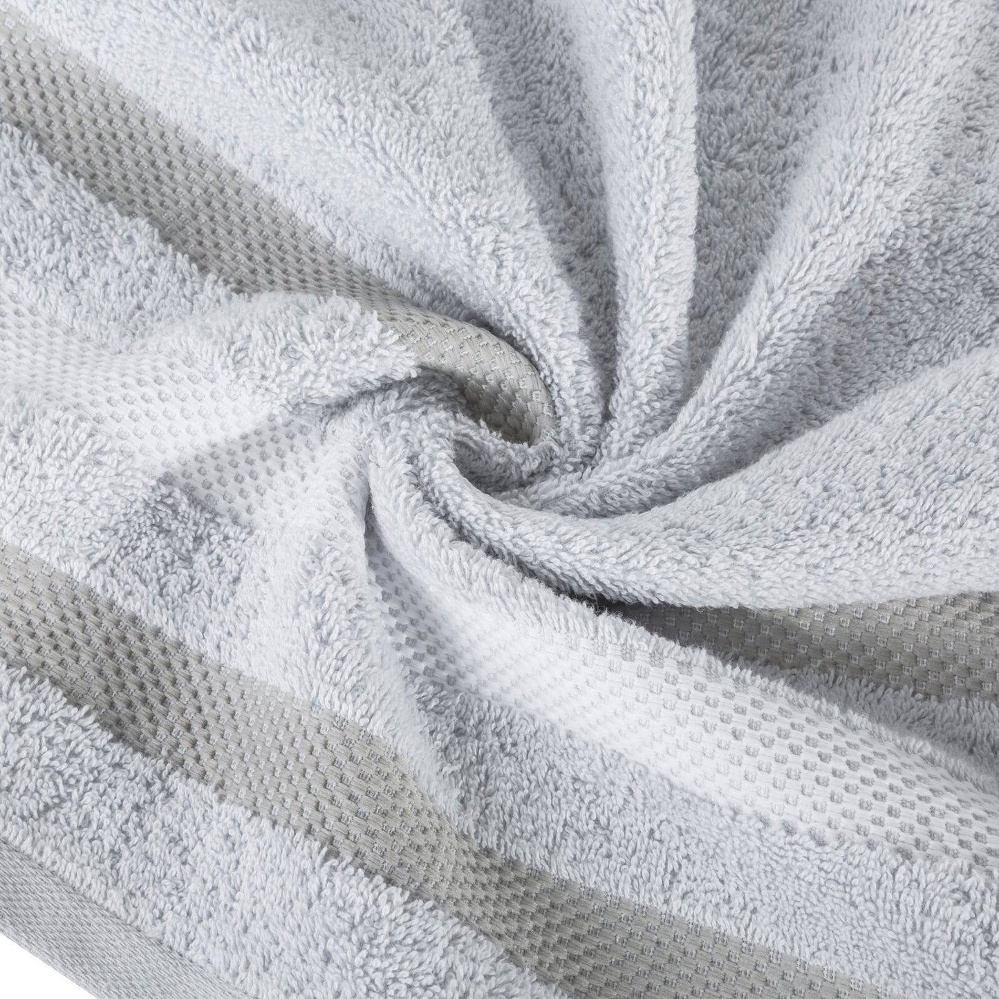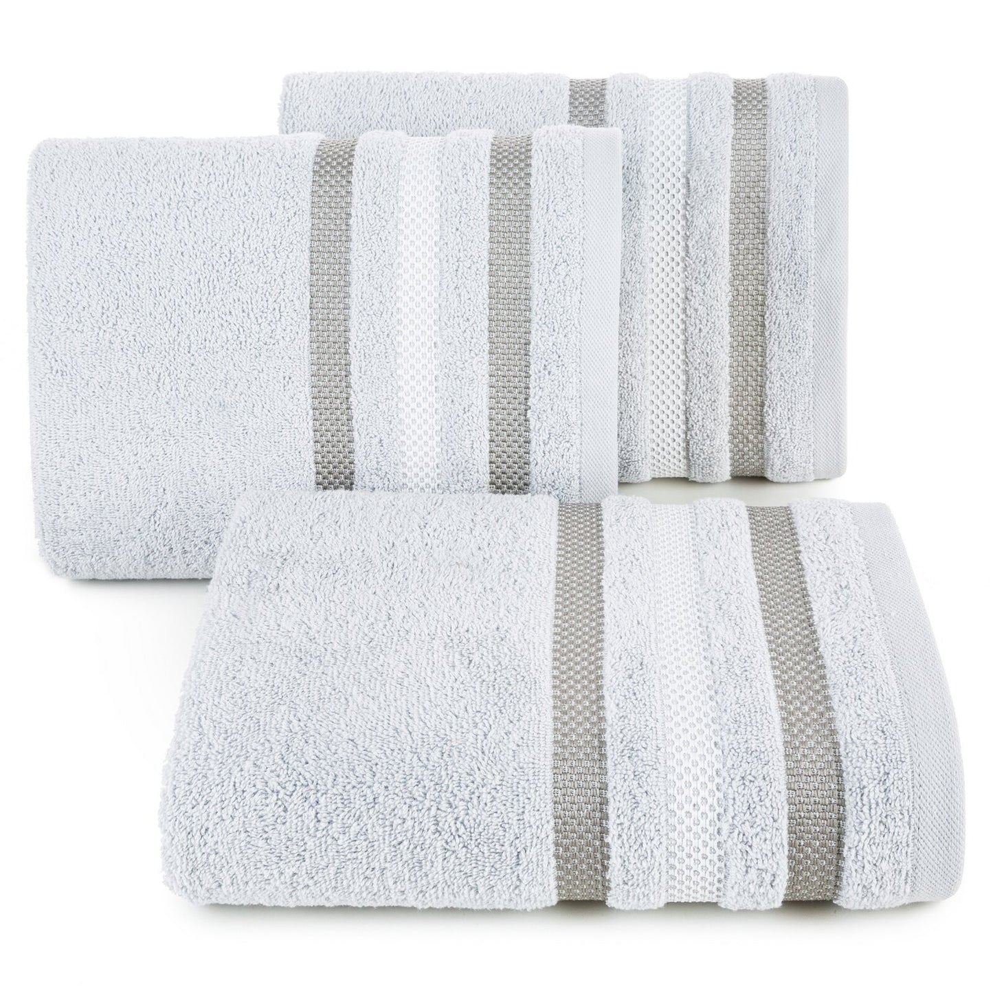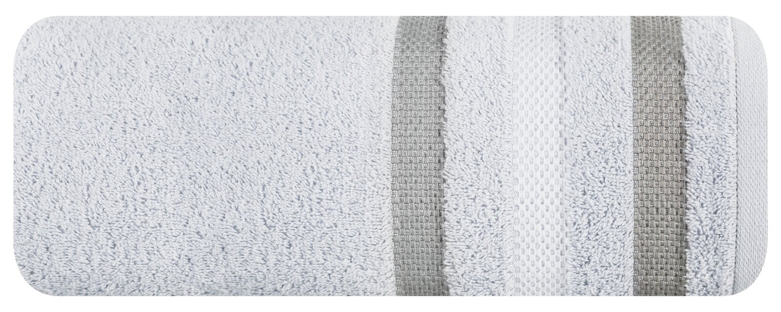 Klasisks vannas dvielis no uzsūcoša kokvilnas frotē auduma. Minimālistiska velūra apmale ar spīdīgu metālisku pavedienu. Platums: 70 cm, garums: 140 cm, krāsa: spilgti sudraba, svars: 500 GSM, sastāvs: Materiāls: 100% kokvilna; 100% poliesteris.