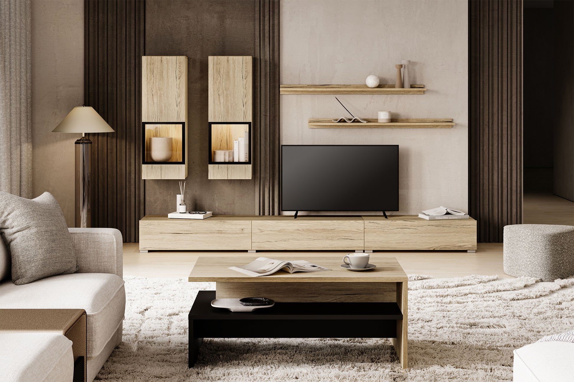 Sienas bloks Barots 270/41 cm San Remo gaišā ozola lamināts/melns