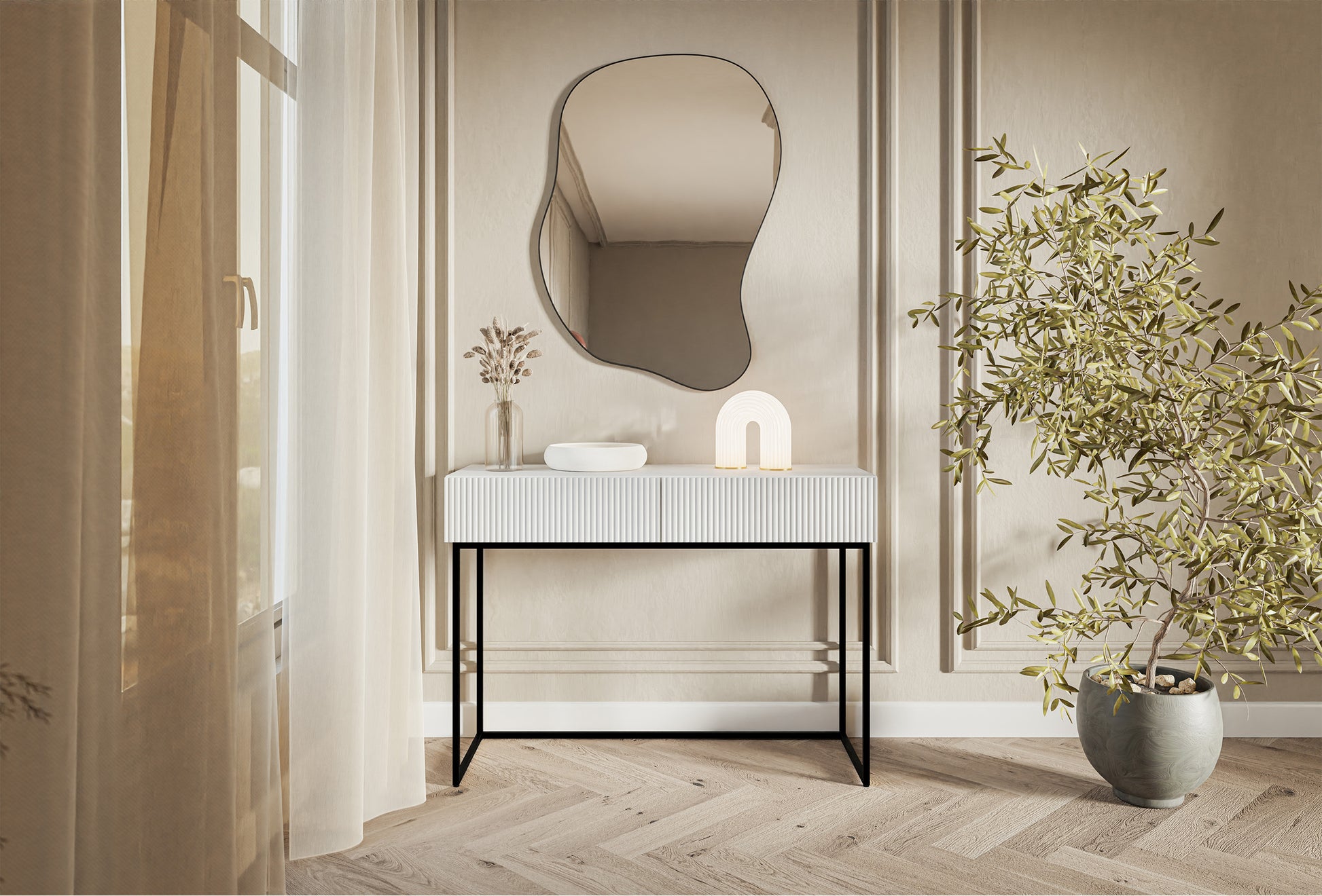 Konsole Velda 110/79/40 cm balts/melns