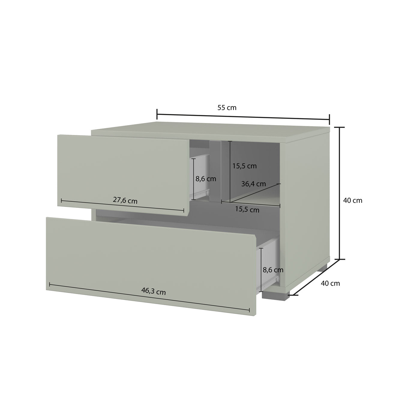 Naktsskapis (2) Krosit kolekcija 55/40/40 cm zaļs/melns