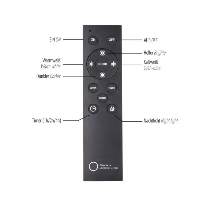 Funkcijas: Regulējama spilgtuma, tālvadības pults
