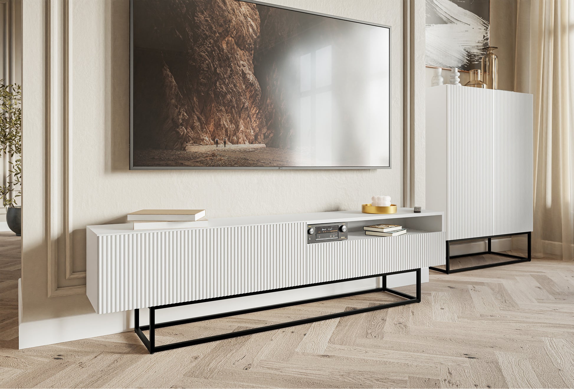 TV skapis Velda A 175/46/31 cm balts/melns